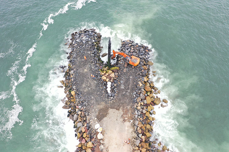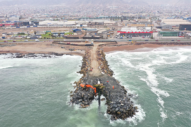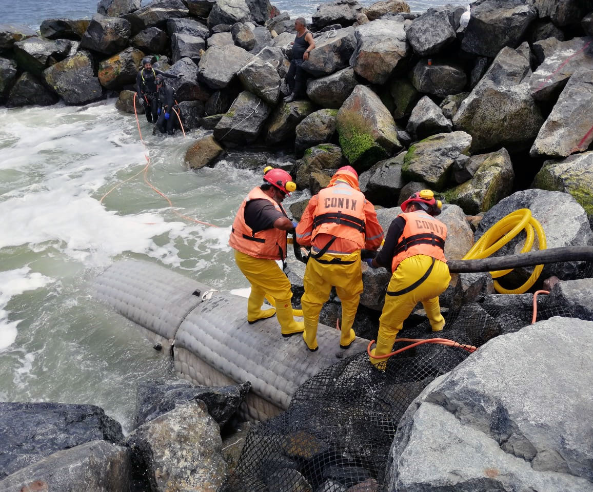 El sistema de recolección de aguas servidas de Antofagasta es derivado hasta la planta de tratamiento, para posteriormente ser descargado al mar mediante un emisario submarino de 1.000 metros de longitud. El paso de los años y los efectos de las marejadas ocasionaron daños estructurales en este Emisario Submarino y en el cabezo del enrocado de protección. El proyecto construido por Conix permitió dar seguridad a la obra, reponiendo el lastrado de la tubería por medio de mantas de hormigón Synthetex, protegiendo el ducto mediante cubiertas prefabricadas de hormigón y ejecutando un nuevo cabezo del enrocado con rocas de 7 ton.
